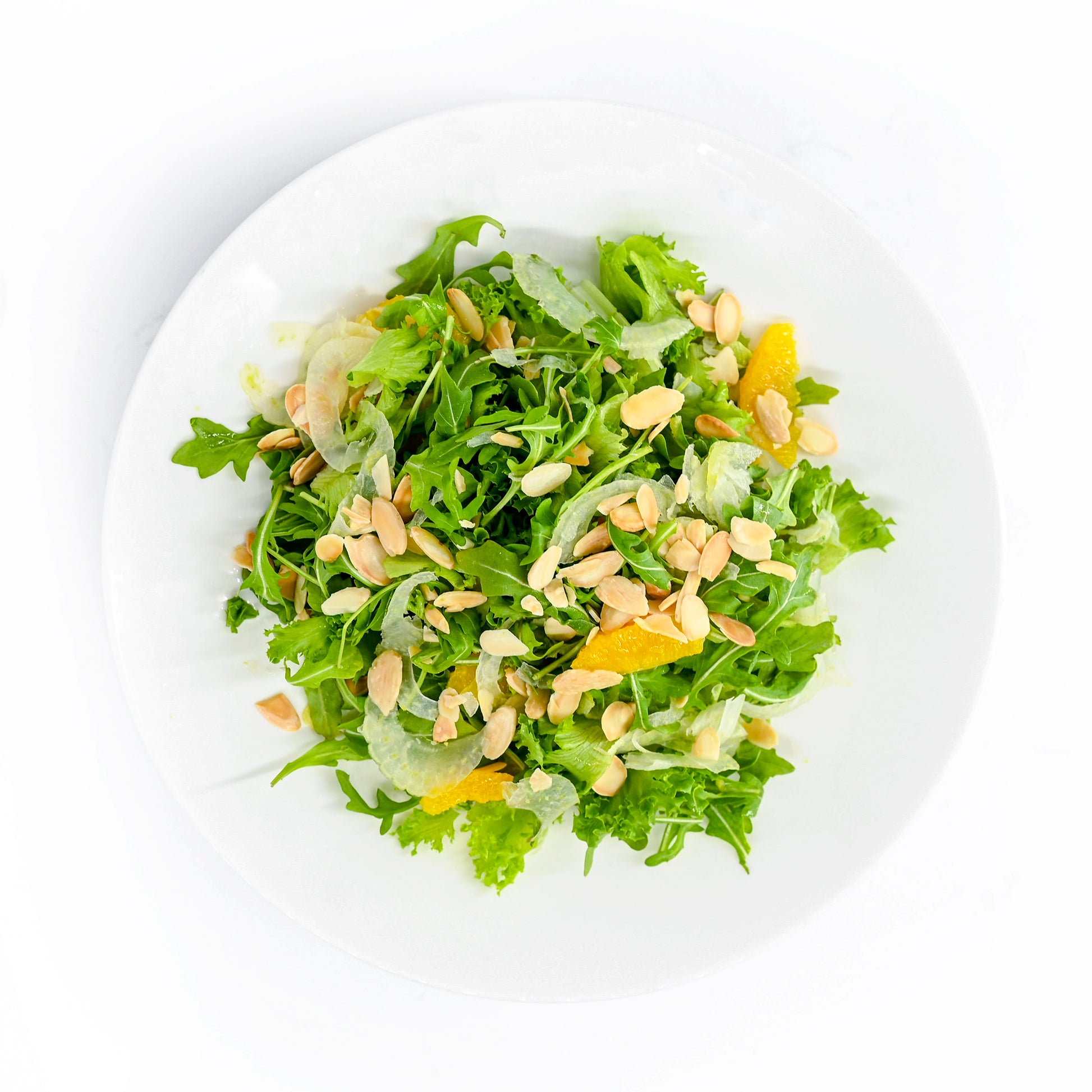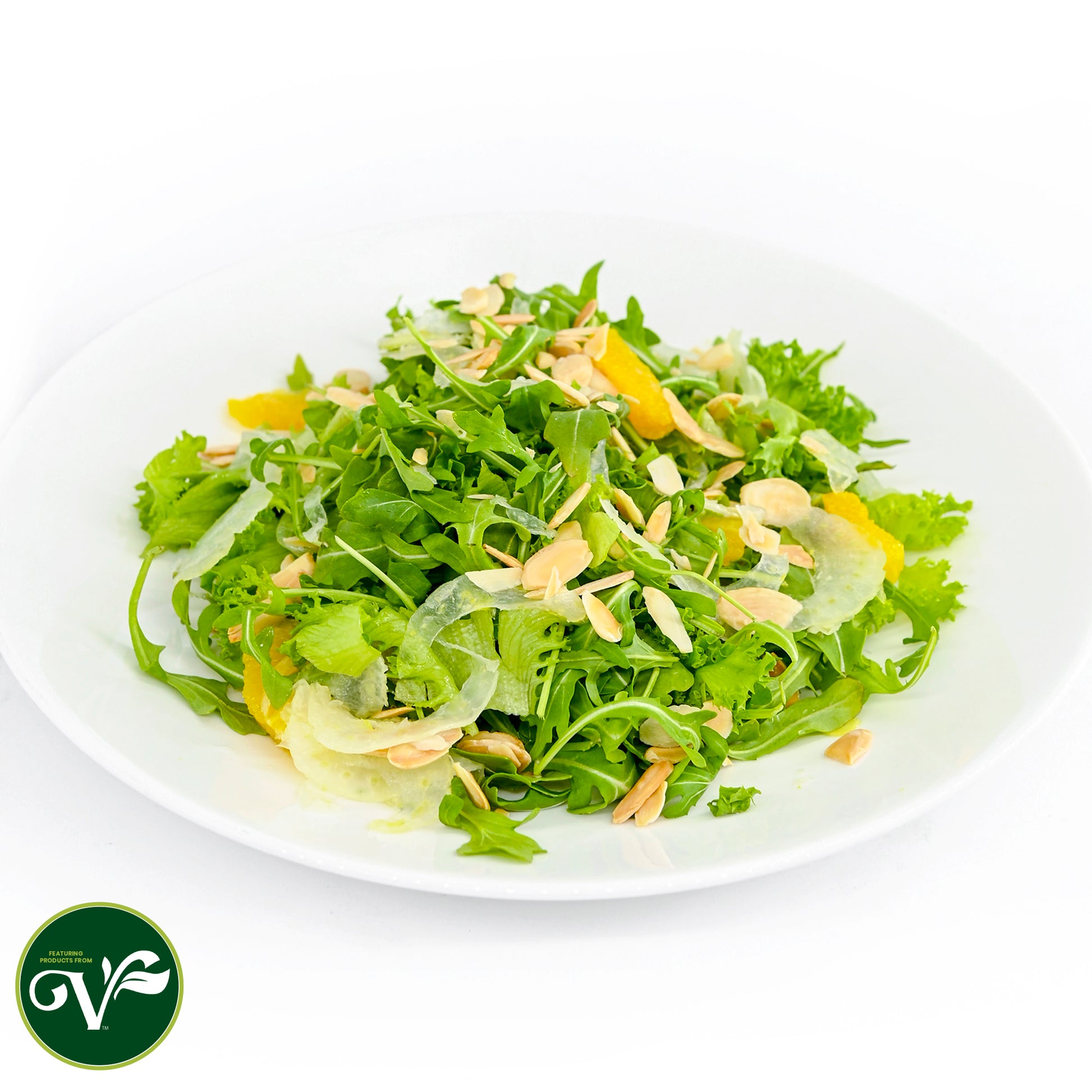 arugula and local greens, citrus segments, pickled fennel almonds, citrus honey vinaigrette