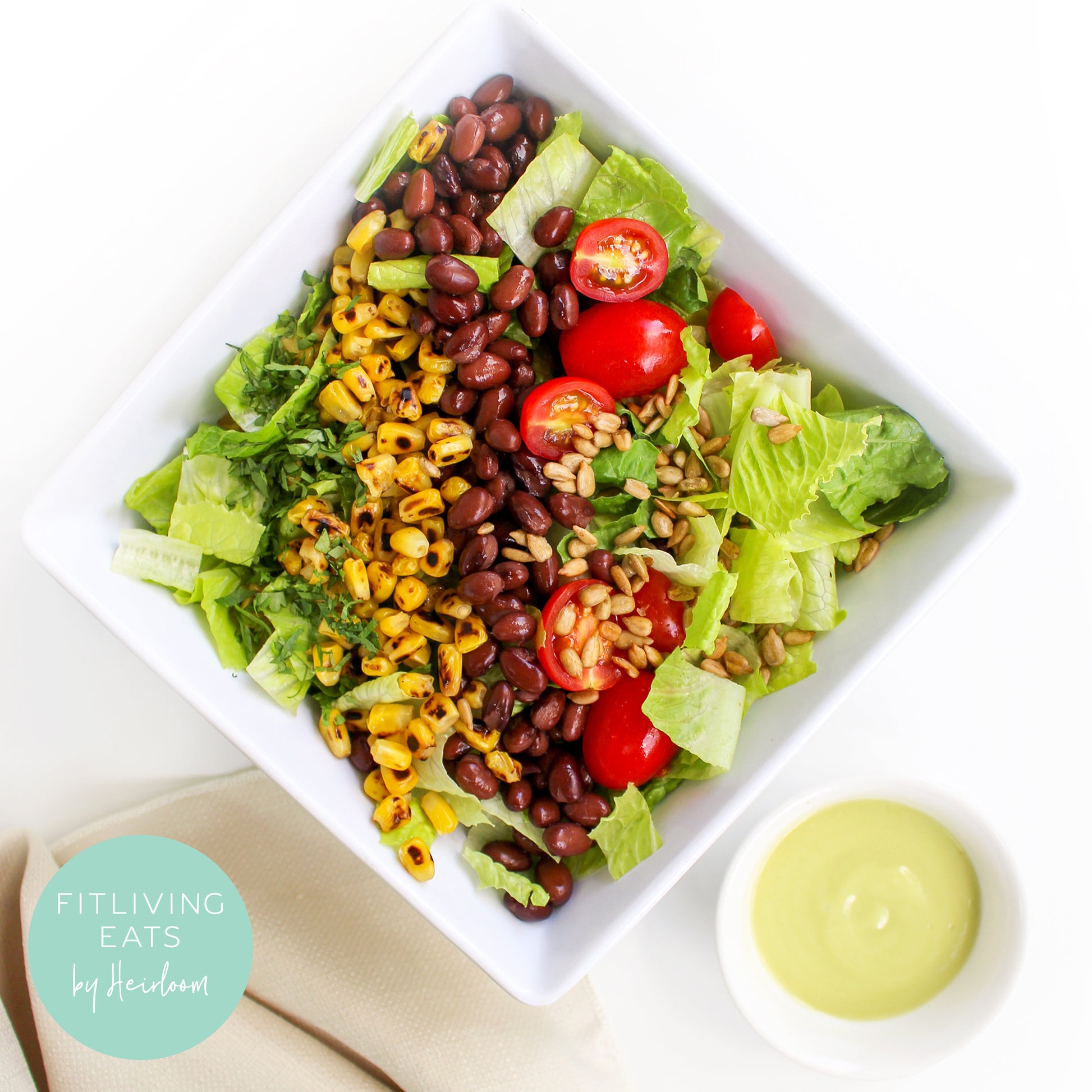 1X MEXICAN COBB SALAD romaine, black beans, corn, tomatoes, sunflower seeds, cilantro, creamy avocado dressing *Soy Free