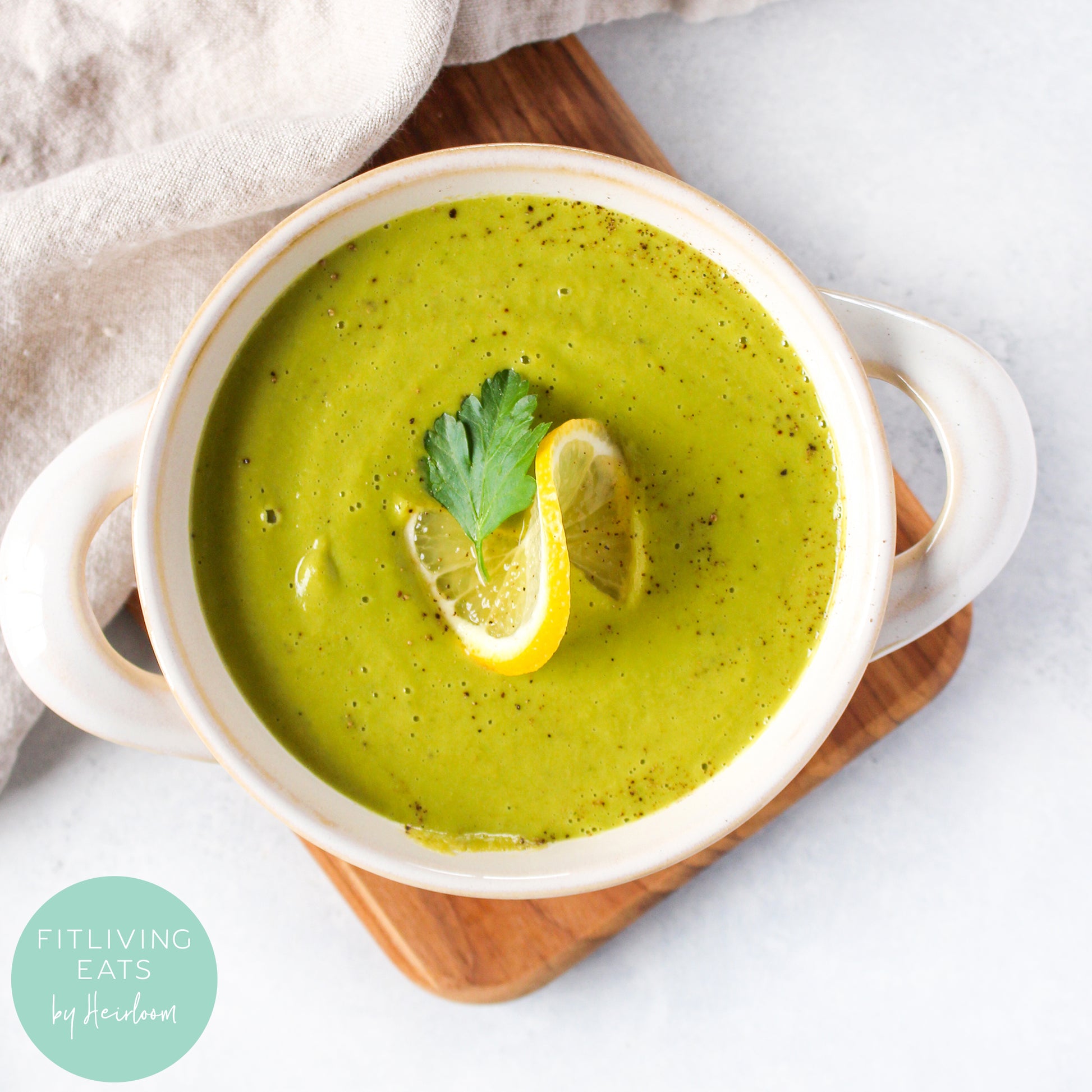 1X CUP ASPARAGUS & PEA SOUP asparagus, peas, vegetable broth, coconut milk, lemon juice, herbs and spices