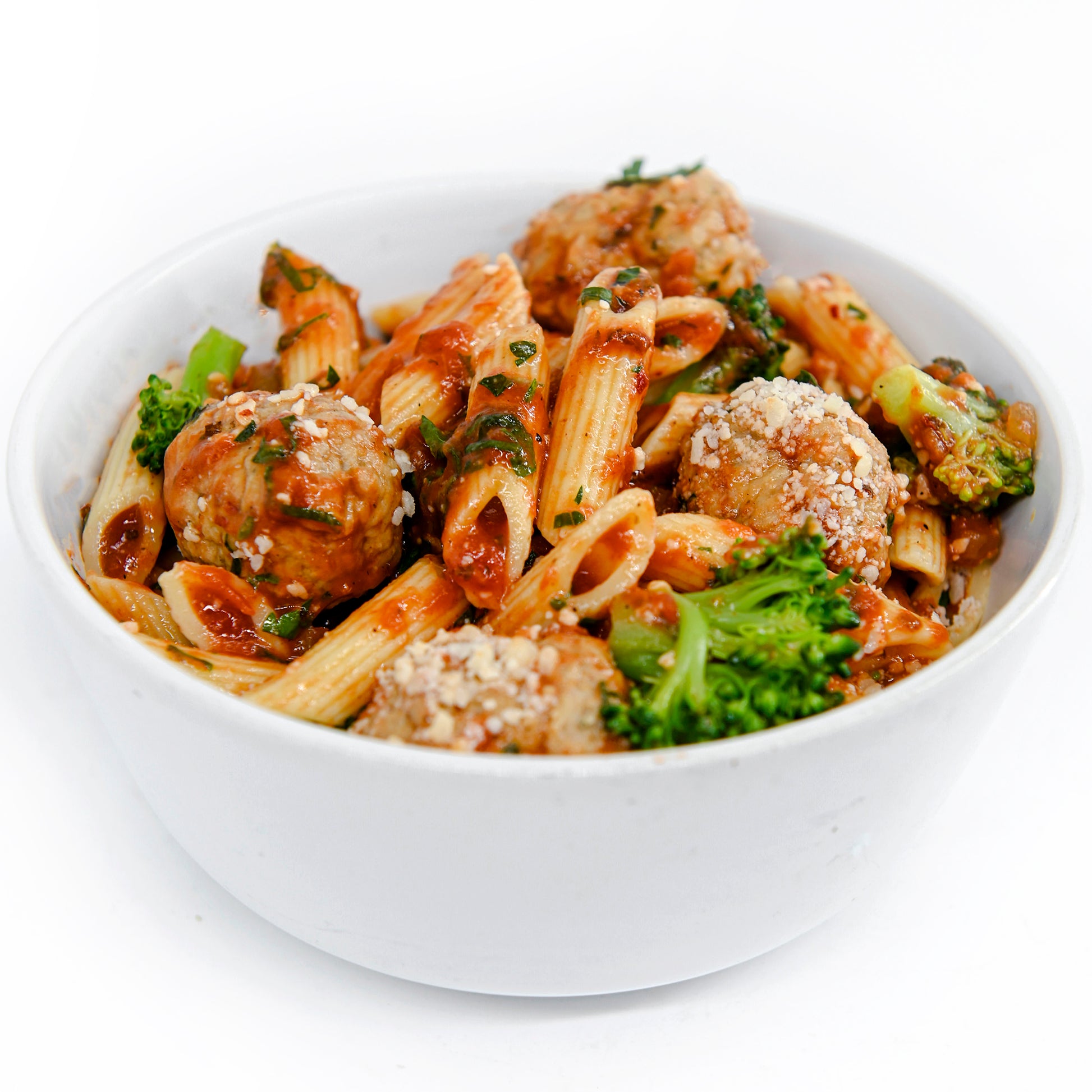 penne and meatball, classic marinara, parmesan cheese, broccoli